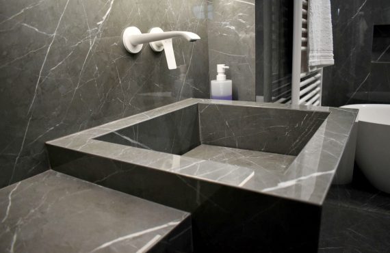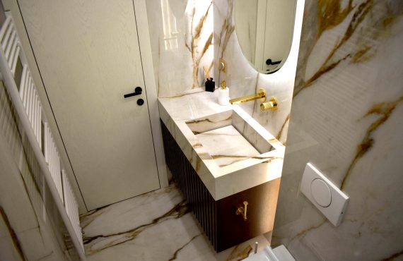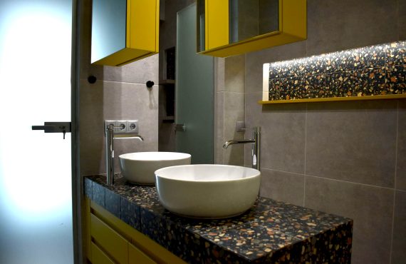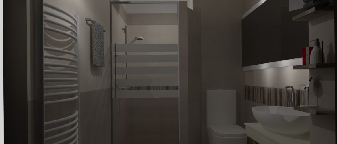 Το project που παρουσιάζουμε αφορά στο σχεδιασμό και την υλοποίηση ενός μπάνιου στο ισόγειο μιας πολυόροφης μονοκατοικίας. Όντας σε άμεση γειτνίαση με τους χώρους διημέρευσης – σαλόνι, τραπεζαρία, κουζίνα –