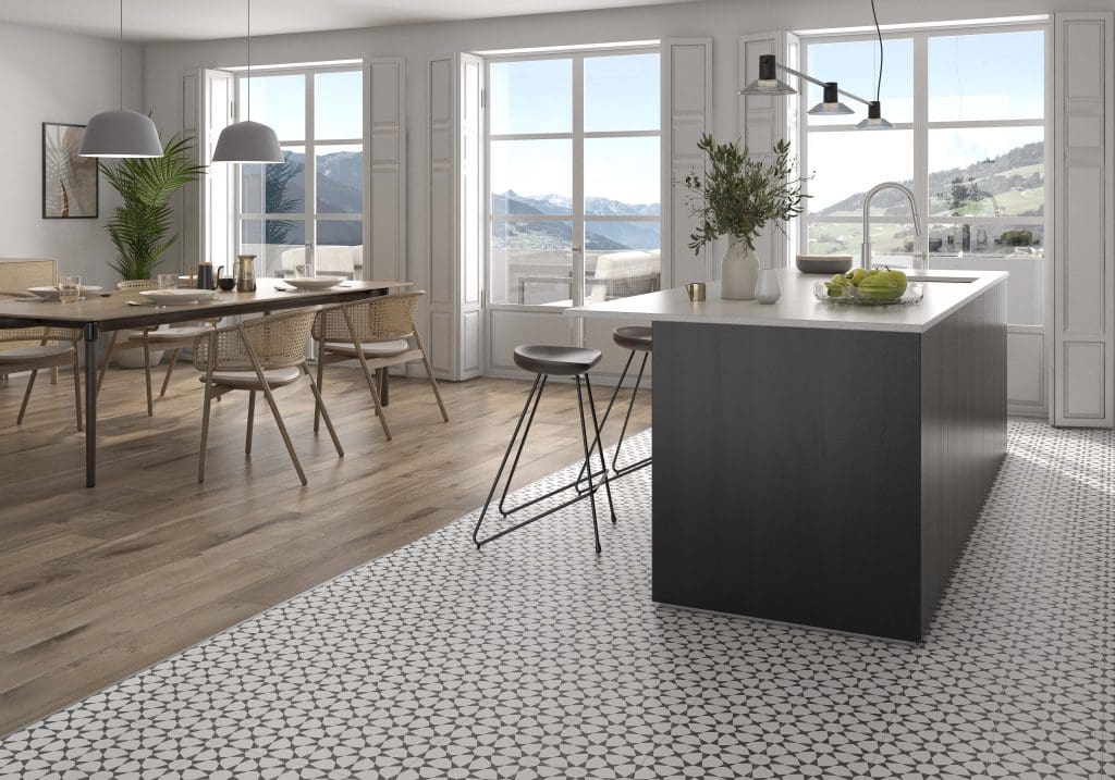 – Χρησιμοποιώντας τα ίδια πλακάκια για την κουζίνα και το σαλόνι, δημιουργείτε μια πιο ευρύχωρη αίσθηση, κάνοντας το δωμάτιο να φαίνεται μεγαλύτερο από ό, τι είναι στην πραγματικότητα.